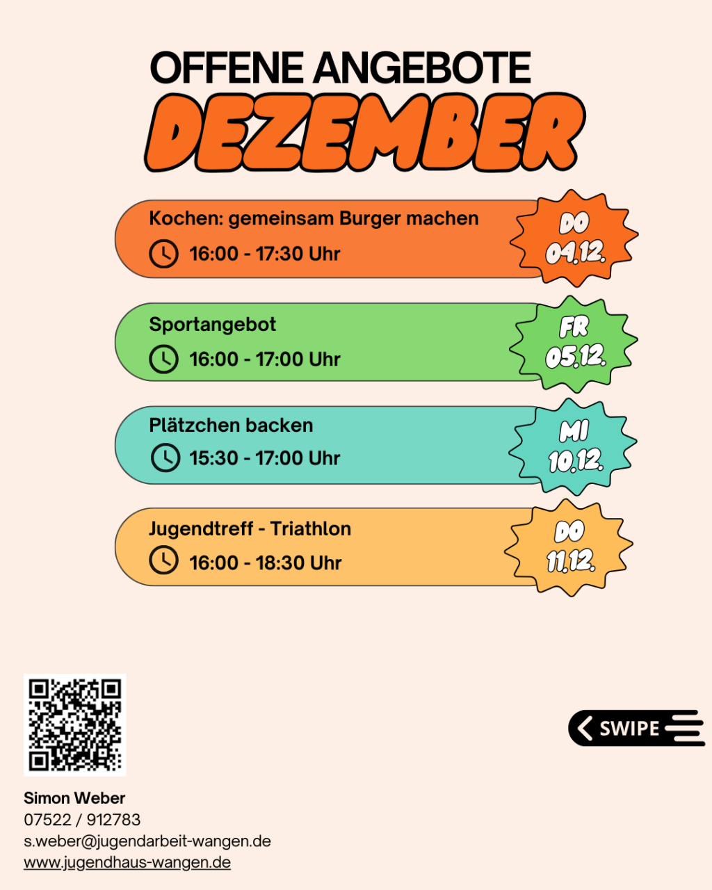 Du möchtest mal wieder hoch hinaus? Dann bist du bei diesem Ausflug genau richtig. Wir besuchen den Abenteuerpark in Kressbronn und werden die einzelnen Erlebnisparcours durchlaufen. Egal ob Anfänger oder bereits erfahren, aufrund der verschiedenen Schweregrade der Parcours ist für jedes Alter etwas dabei. ⏰ 27.10.25, 9-16 Uhr (Treffpunkt & Rückkehr am Jugendhaus) 🙋🏼♀️ Ab…